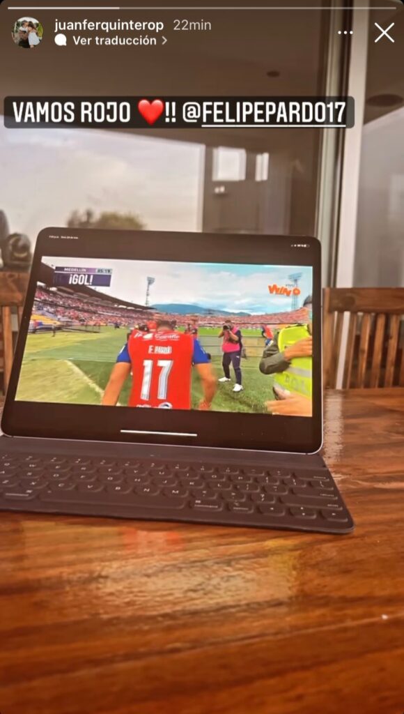 Desde territorio argentino donde recientemente firmó contrato con River Plate, Juan Fernando Quintero sacó tiempo para ver el partido del equipo de sus amores en Colombia: el Deportivo Independiente Medellín.