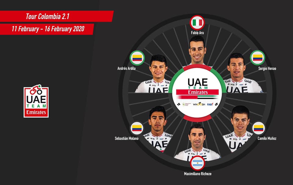 A través de sus redes sociales, el UAE Team Emirates anunció la lista de pedalistas que representarán a la escuadra en el Tour Colombia,