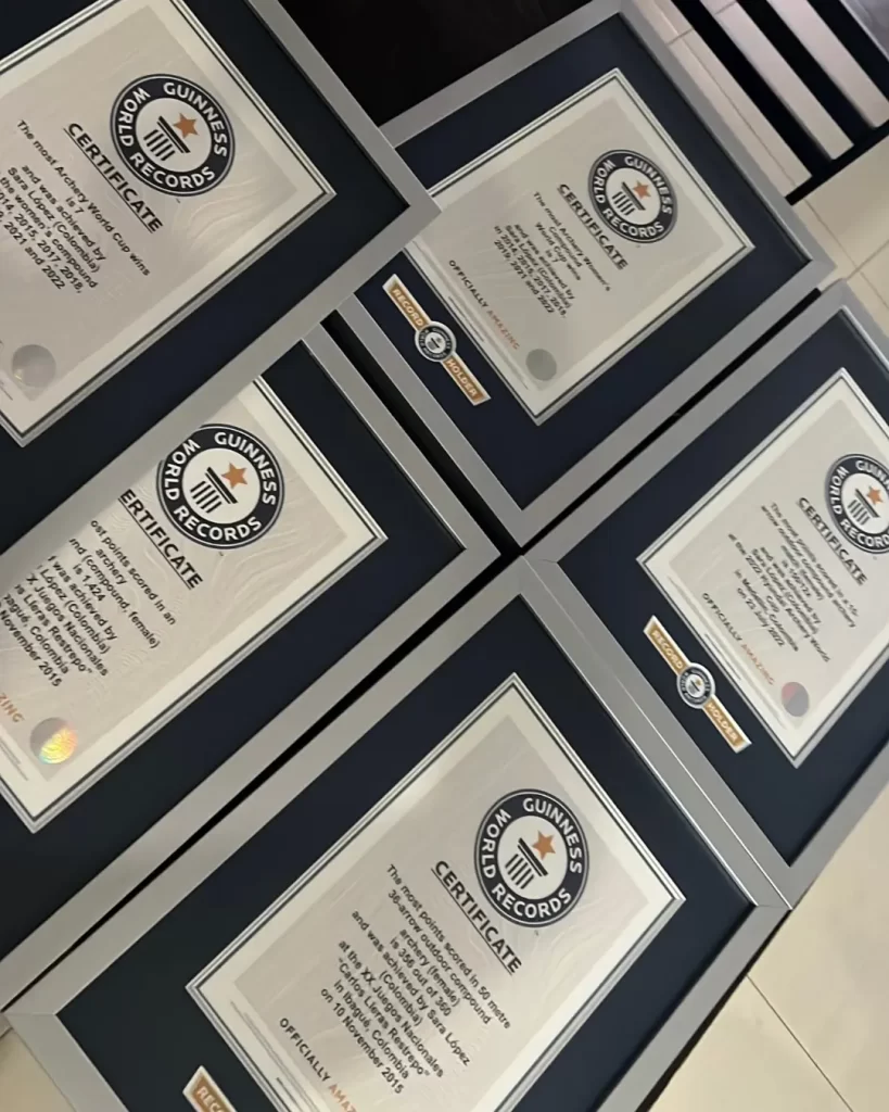 Su último récord lo consiguió en la Copa Mundo de Tiro con Arco que se realizó en Medellín en 2022, allí la deportista logró 12 X, es decir, que sus disparos dieron en el centro de la diana, y un puntaje perfecto de 150 puntos.