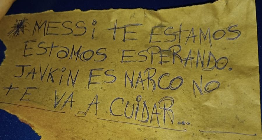“Messi, te estamos esperando. Javkin (Pablo, el intendente de Rosario) es narco, no te va a cuidar”, indica el escrito que dejaron en el lugar.