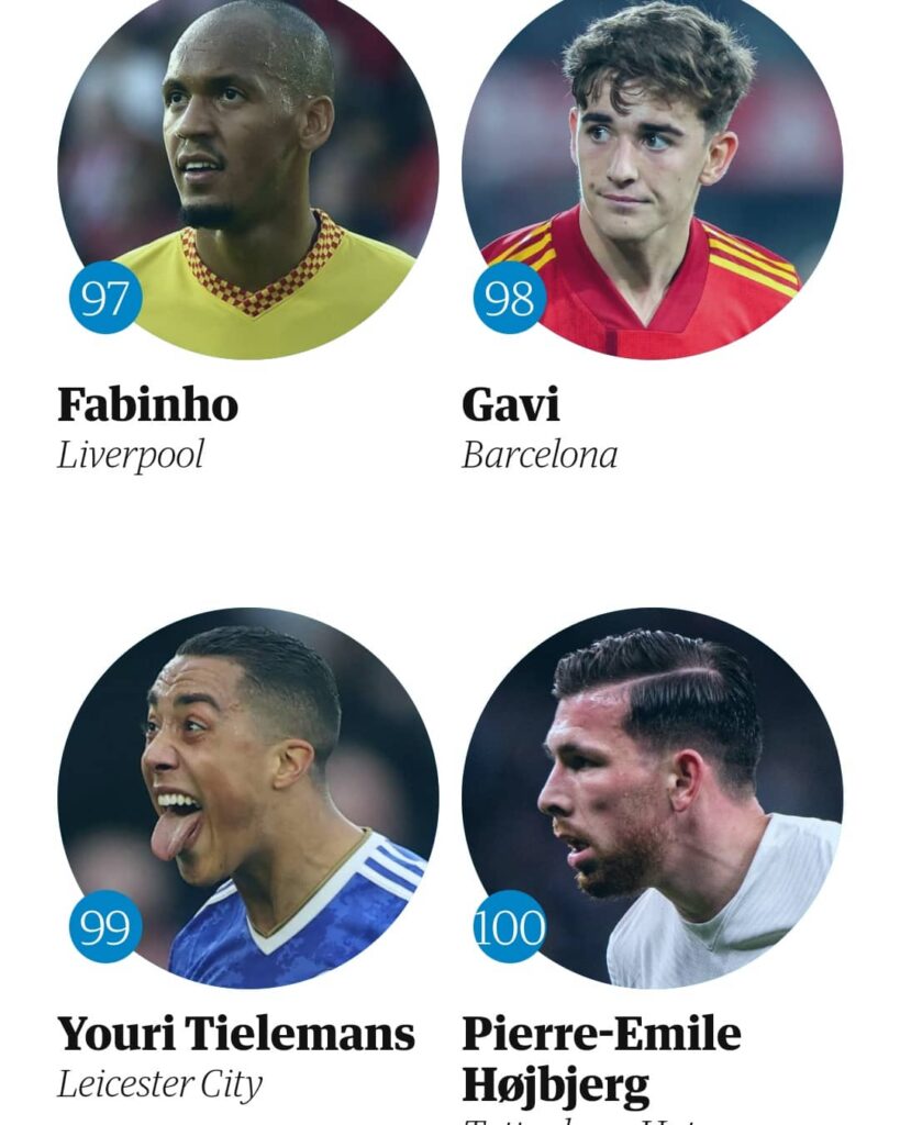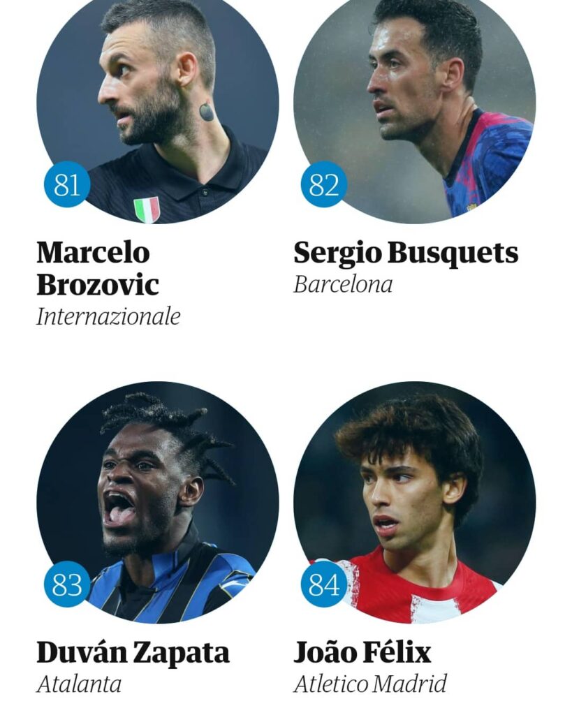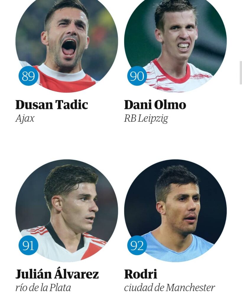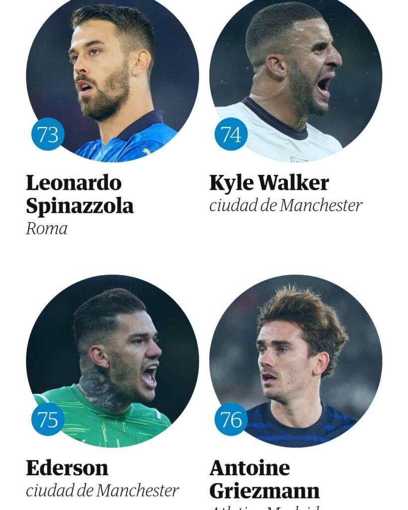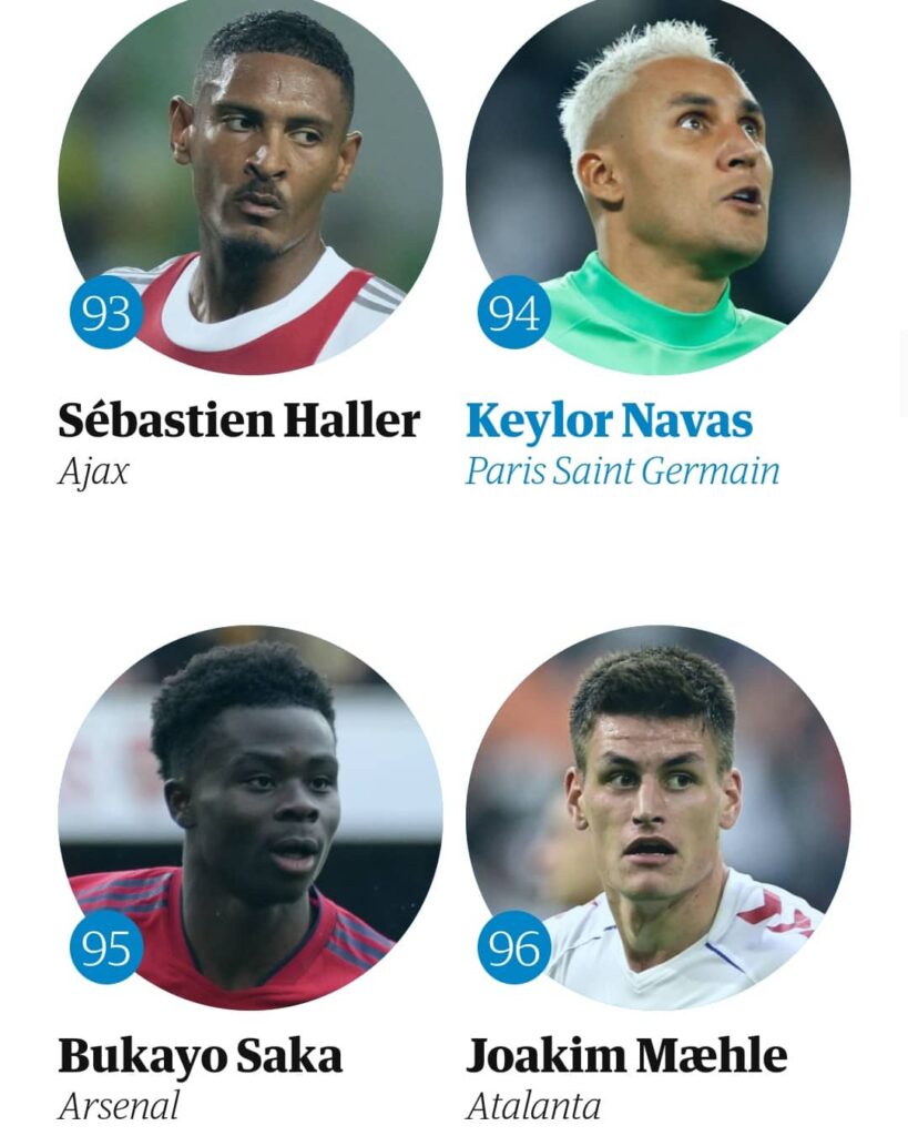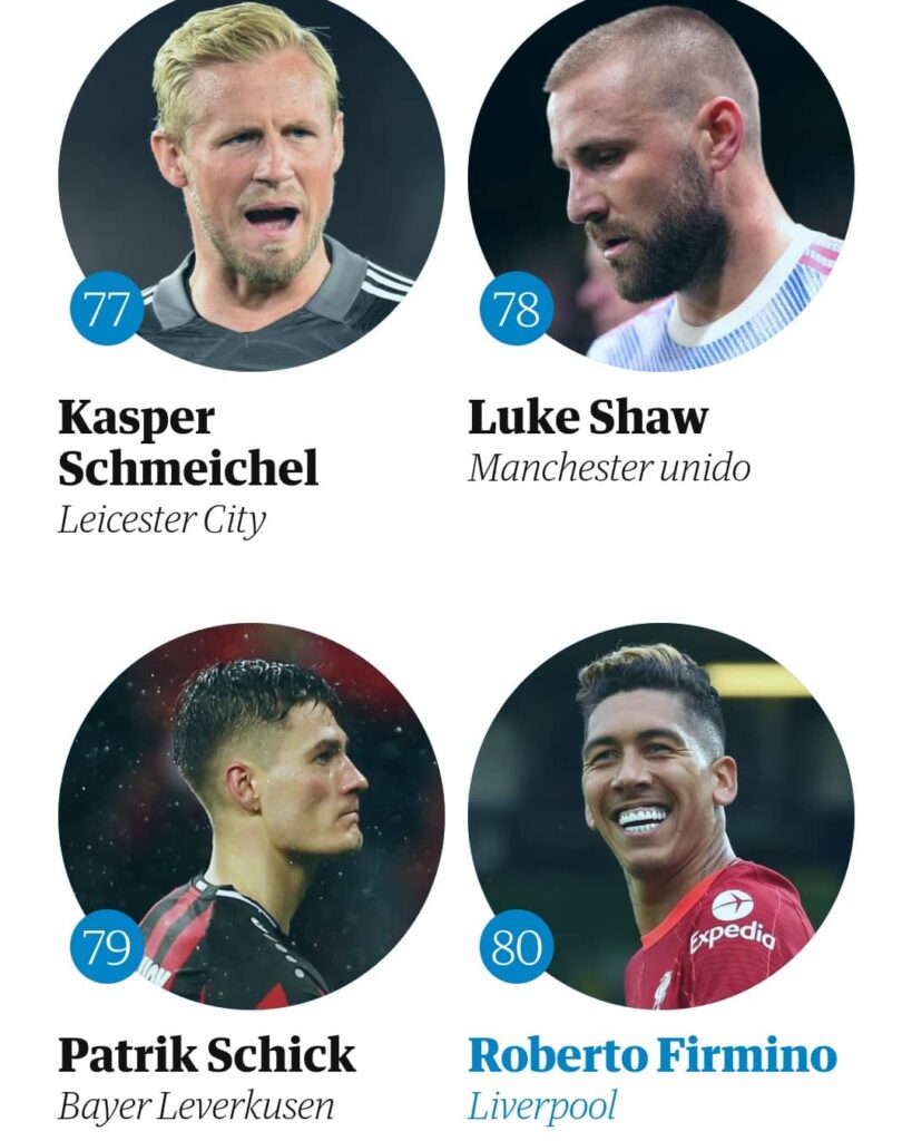 Entre los puestos comprendidos entre el 70 y el 100 están futbolistas como Keylor Navas, Fabinho, Diogo Jota, Joao Félix, Sergio Busquets y Firmino, entre otros.